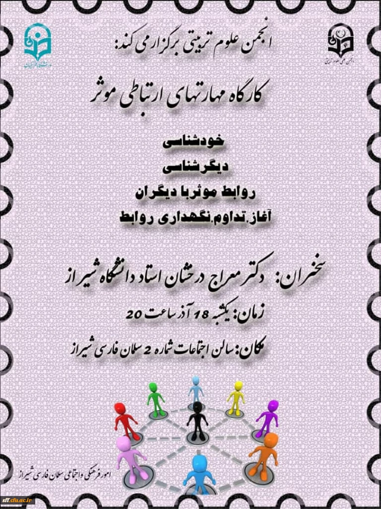 امتیاز دهید : برگزاری کارگاه ارتباطی مؤثر در واحد دانشگاهی سلمان فارسی شیراز 2 سهشنبه 20 آذر 1397 ساعت 15:30