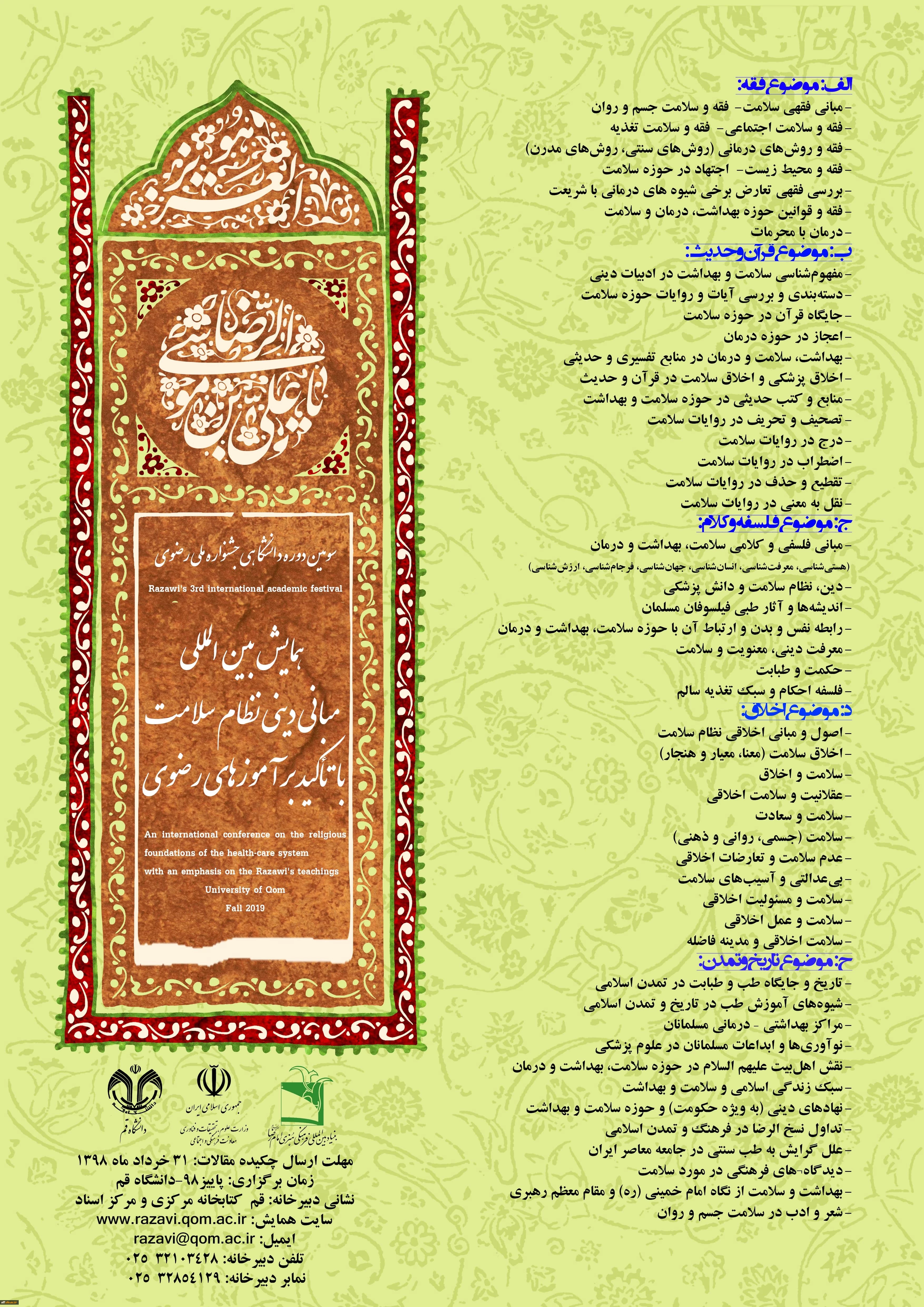 امتیاز دهید : همایش بین المللی مبانی دینی نظام سلامت با تأکید بر آموزهای رضوی 2 یکشنبه 19 خرداد 1398 ساعت 8:27
