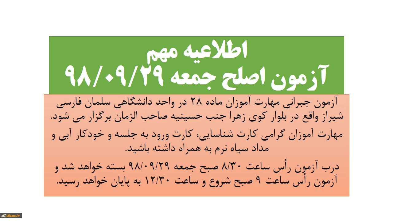 اطلاعیه مهم آزمون اصلح ماده 28 2