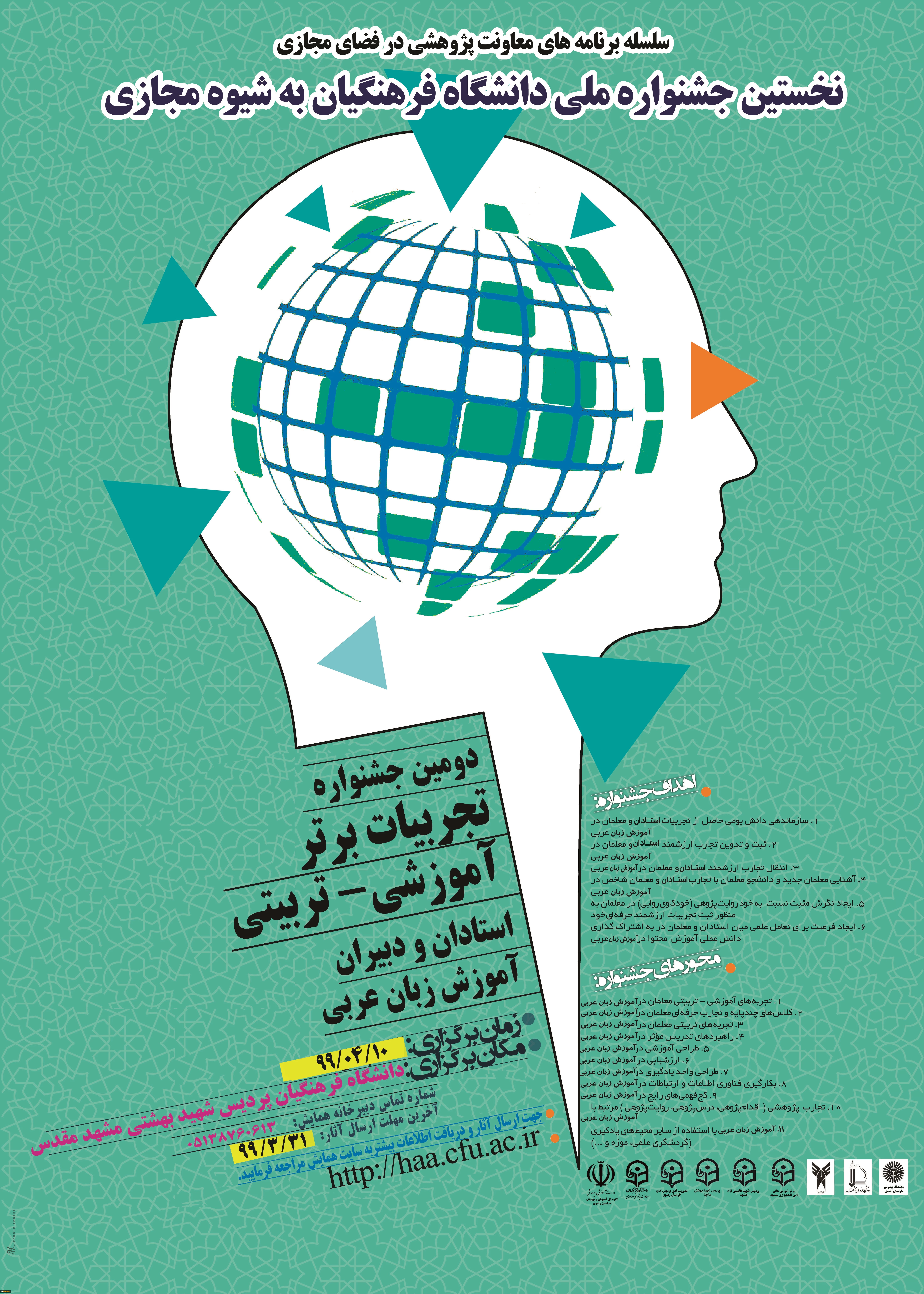 امتیاز دهید : دومین جشنواره تجربیات برتر آموزشی - تربیتی استادان و دبیران آموزش زبان عربی 2 سهشنبه 6 خرداد 1399 ساعت 13:15