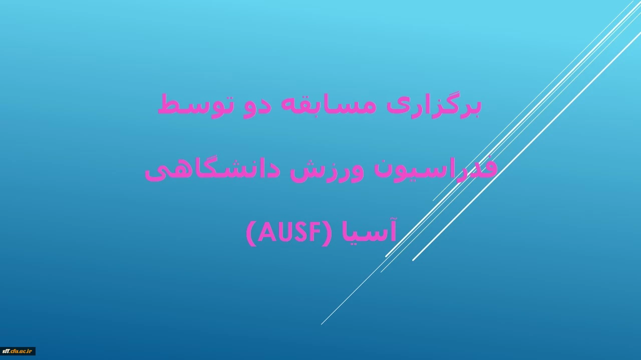فدراسیون ورزش دانشگاهی آسیا (AUSF) در نظر دارد به منظور گرامیداشت پنجمین سال روز جهانی ورزش دانشگاهی با توجه به محدودیت های موجود برای انجام فعالیت های بدنی در دوران کرونا مسابقه دو با شعار" با هم هستیم" را روزهای 29 تا 31 شهریور سال جاری برگزار نماید. 2