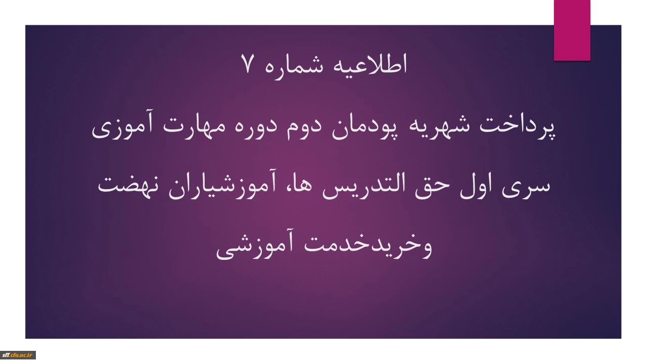 پرداخت شهریه پودمان دوم دوره مهارت آموزی سری اول حق التدریس، آموزشیاران نهضت و خرید خدمات آموزشی 2