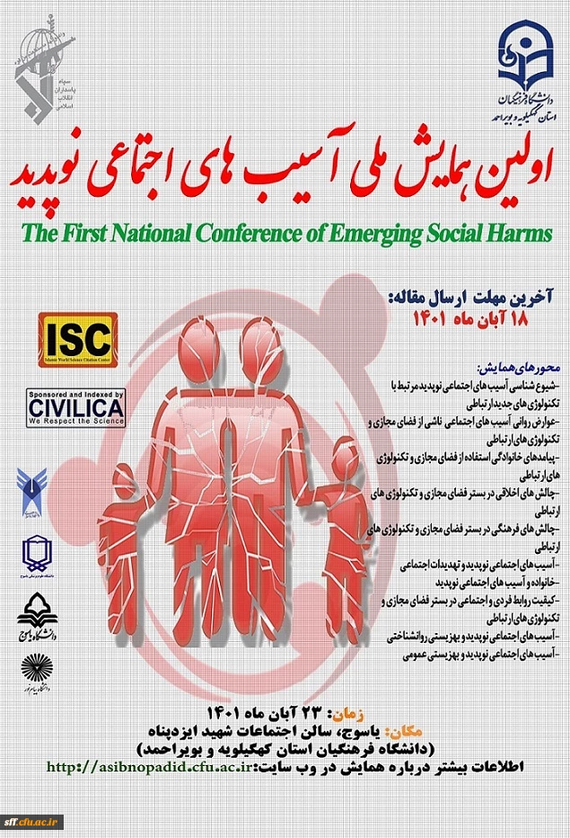 امتیاز دهید : اولین همایش ملی آسیب های اجتماعی نوپدید مهلت ارسال مقاله 18 آبان ماه 1401 2 چهارشنبه 5 مرداد 1401 ساعت 13:54