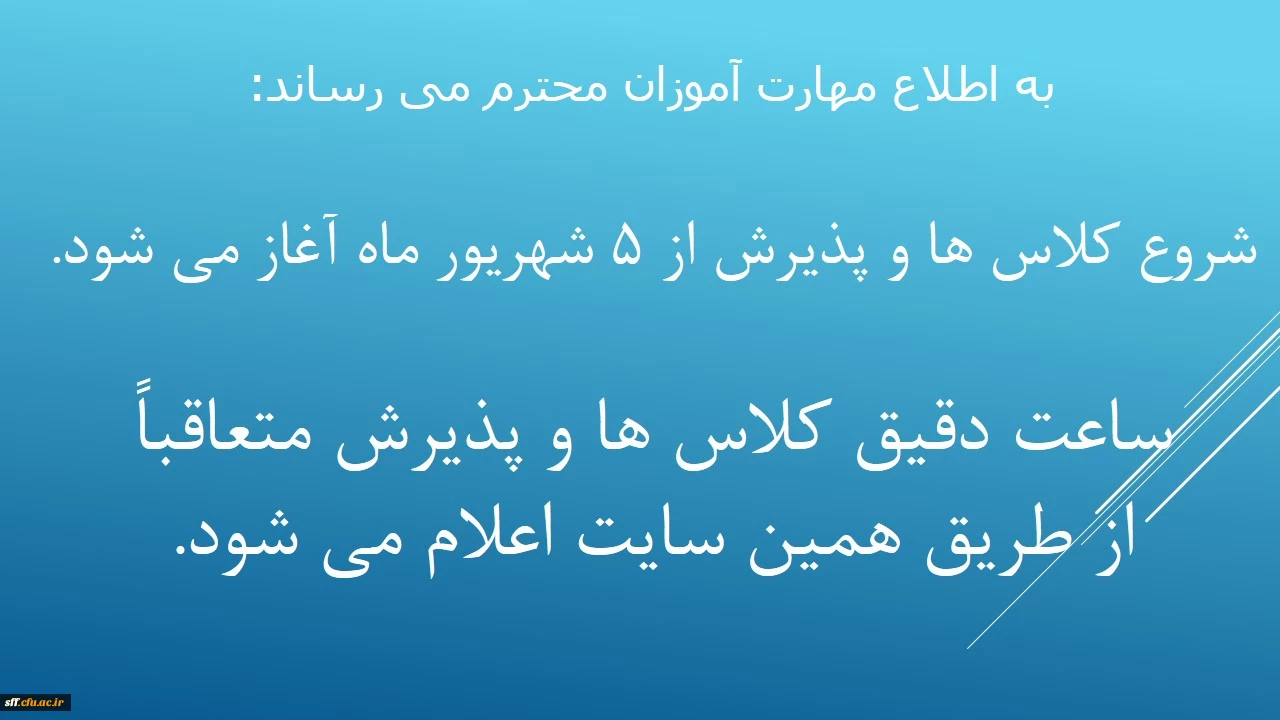 پذیرش و شورع کلاس ها از 5 شهریور ماه 1401 2