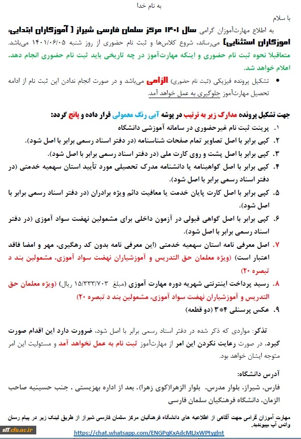 امتیاز دهید : اطلاعیه ثبت نام حضوری و تشکیل کلاس های مهارتت آموزان 2 پنجشنبه 3 شهریور 1401 ساعت 13:16
