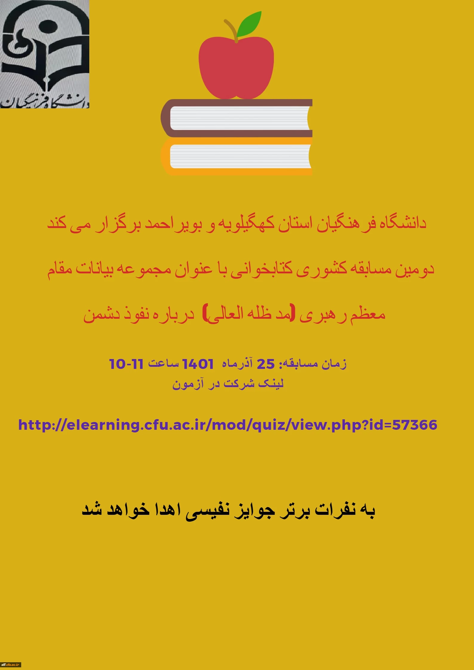 دومین مسابقه کشوری کتابخوانی با عنوان مجموعه بیانات مقام معظم رهبری( مدظله العالی) در باره نفوذ دشمن 2